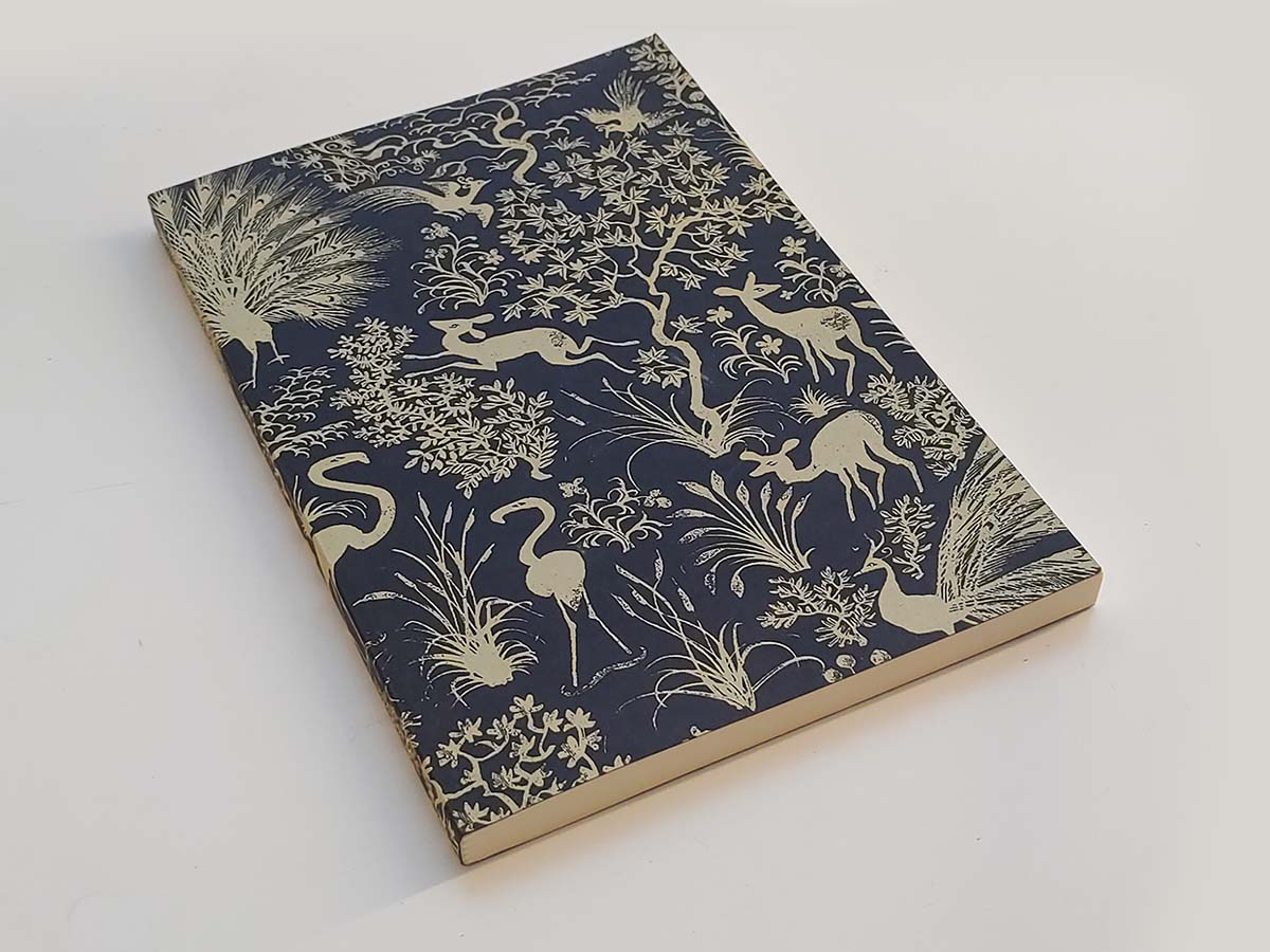Der Umschlag dieses Notizbuchs im Hochformat DIN A5 ist vorne und hinten durchgehend bedruckt (Hand-Siebdruck) und wurde vom Berliner Kunst- und Druckkollektiv Pony Pedro hergestellt. Inhalt: ca. 60 Seiten blanko weiß.